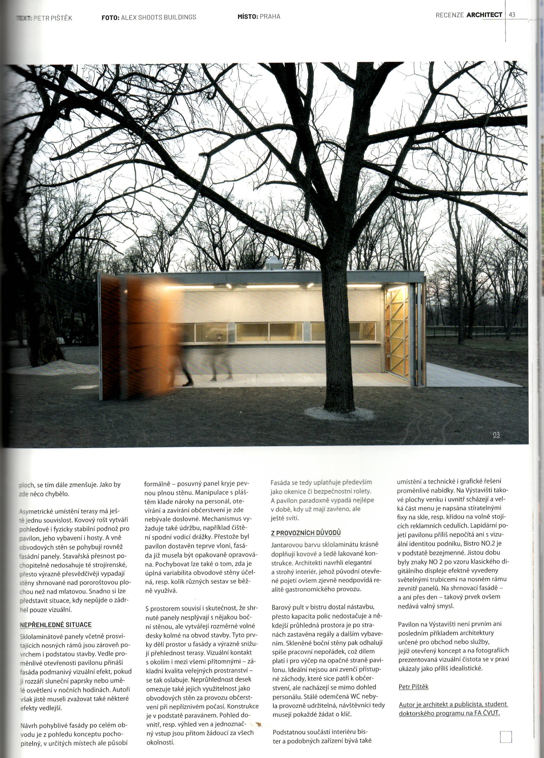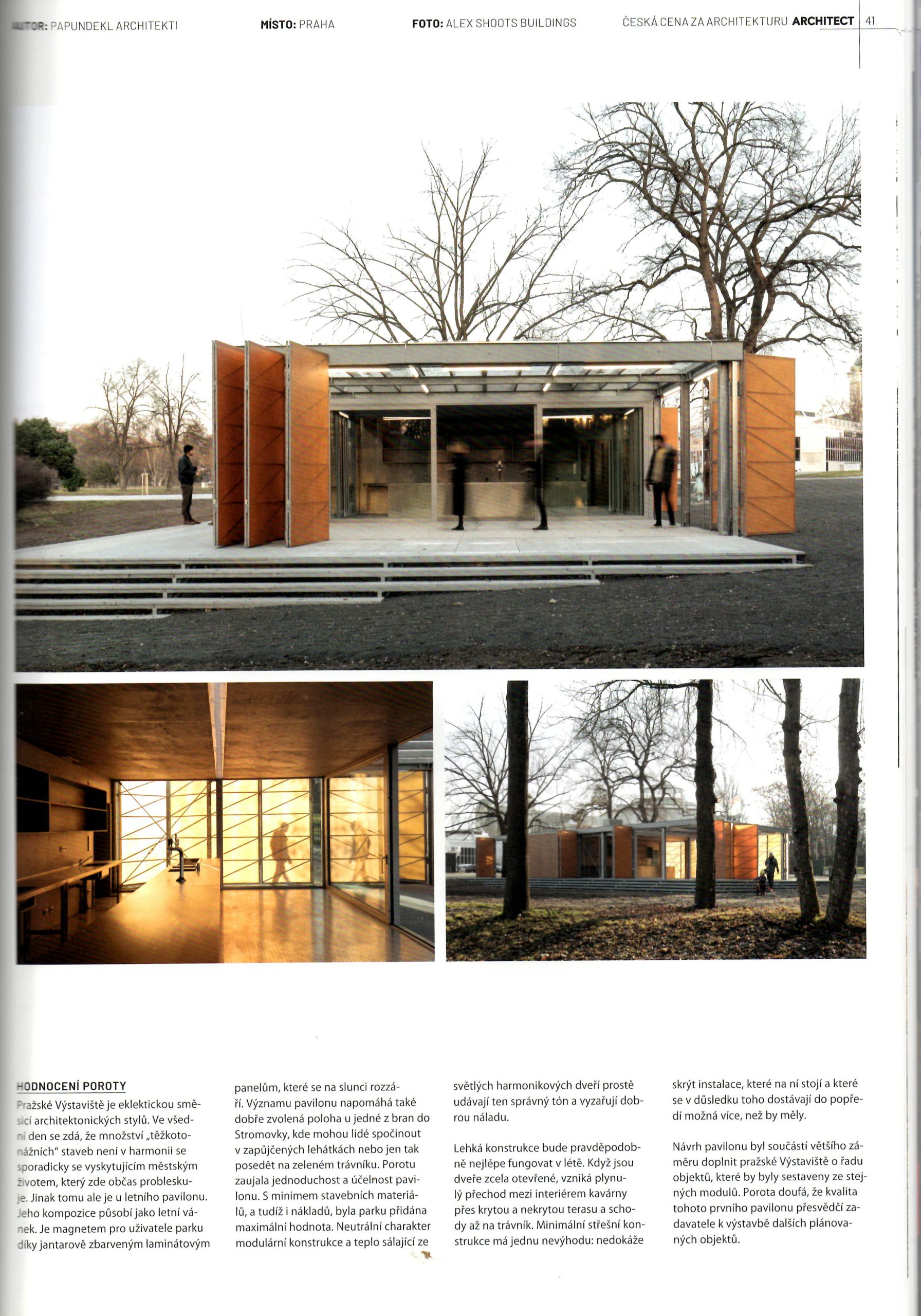 Ve výběru TOP 100 architektonických kanceláří v ČR jako EMERGING architekti / Pavilon na Výstavišti