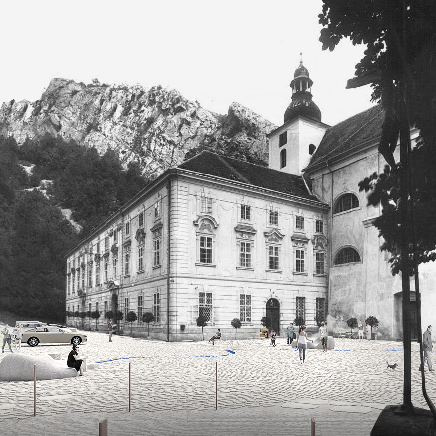 Aktuální stav veřejných prostranství a přidruženého mobiliáře v centru obce je ve velmi zanedbaném a neuspokojivém stavu. Absence koncepce vedla k tomu, že se zde nachází velké množství různých materiálů, které na sebe nijak nenavazují. Objevují se zde různé druhy a formáty betonových a kamených dlažeb, asfalt, štěrk, mlatové povrchy a travnaté plochy. Nejdůležitější prostranství obce – předprostor kláštera – je de facto prašným šterkovým parkovištěm. Skrze obec vede asfaltová komunikace (silnice III.třídy/1169), která esteticky ani funkčně neodpovídá charakteru takto historicky významného místa. V blízkosti kostela překonává potok standardizovaný most s nevzhledným modrým ocelovým zábradlím, které je naprosto neadekvatním silničářským prvkem v tomto místě. Existující mobiliář ve formě laviček, poutačů nebo veřejného osvětlení tvoří vizuální smog. Opět postrádá jakoukoliv koncepci, je materiálově i tvarově velmi různorodý, často ve špatném technickém stavu a morálně zastaralý.